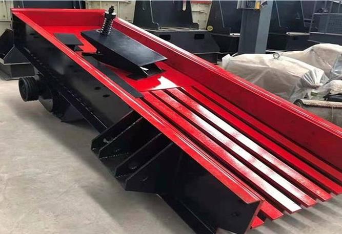 ZSW系列振動給料機主要由彈簧支架、給料槽、振動器、彈簧及電機等組成.激振器是由兩個成特定位置的偏心軸有齒輪嚙合組成,裝配時必須使兩齒輪按標記相嚙合,通過電機驅動,使兩偏心軸旋轉,從而產生巨大的合成直線激振力,使機體在支承彈簧上作強制振動,物料則以此振動為主動力,在料槽上作滑動及拋擲運動,從而使物料前移達到給料的目的.當物料通過槽體上的篩條時,較小的料通過篩條間隙落下,可不經過下道破碎工序,起到了篩分的效果.