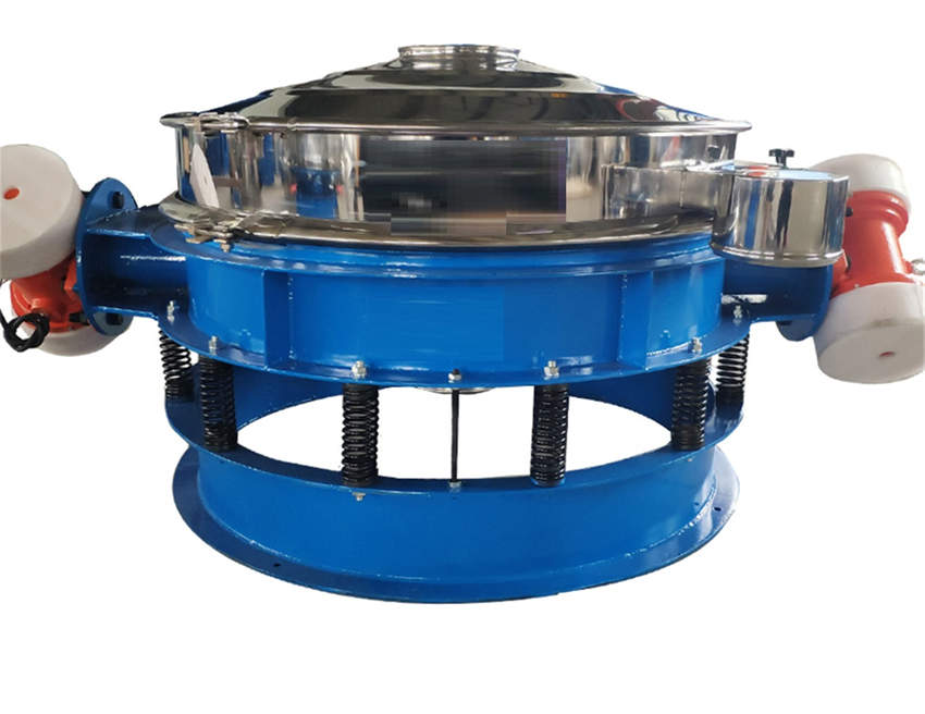 直排篩的作用原理是振動電機軸上下端的兩組偏心塊(不平衡偏心塊),將振動電機的旋轉運動變為水平、垂直、傾斜以及離心作用的多作用力重疊,再將這種作用力傳遞給篩面。改變上下偏心塊的相位角和可以改變激振力的大小和物料的運動軌跡。