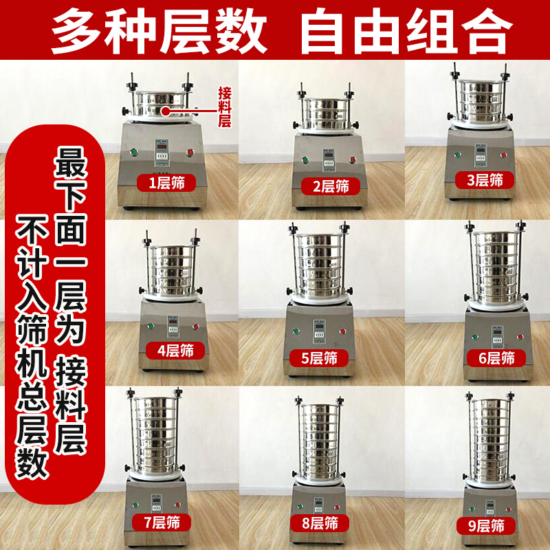 3. 把標(biāo)準(zhǔn)篩框按孔徑從小到大,從下到上依次疊放到篩框底座上。