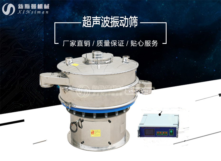 超聲波振動篩是將220V、50Hz或110V、60Hz電能轉化為36KHz的高頻電能,輸入超聲換能器,將其變成36KHz機械振動,產生的功率超聲波使篩網作高頻振動。篩網上的物料在作低頻旋振運動的同時,疊加上超聲振動,既可防止網孔堵塞,又可使篩分機提高產量和質量,從而達到快速篩分和清網的目的,使超微細粉篩分成為易事。該系統在傳統的振動篩基礎上在篩網上引入一個低振幅、高頻率的超聲振動波(機械波),以改變超微細分體的篩分性能。特別適合高附加值精細分體的用戶使用。